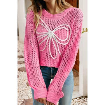 BOW RIBBON KNITTED ROUND NECK SWEATER TOP