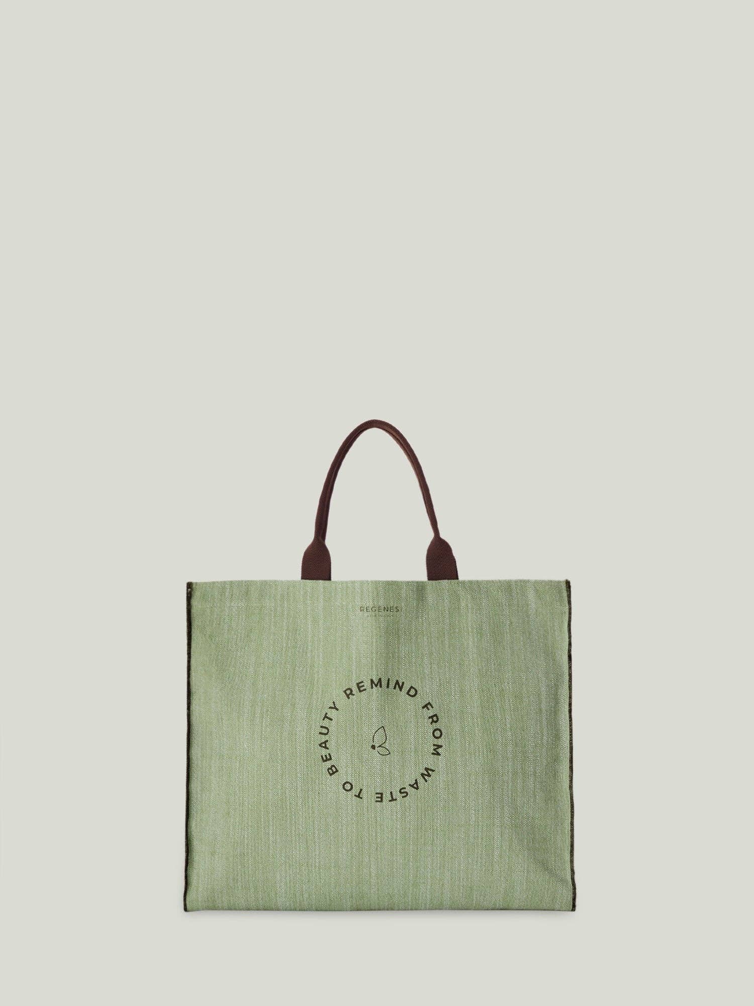 Rounded shapes and contained proportions characterize this bag with a sophisticated yet practical allure, designed to be the perfect accomplice for long days spent in the city. The “from waste to beauty” print and the Regenesi monogram placed on the front enshrine its uniqueness. It is made of a soft velvet, made up of 100 percent Reach CL 1 yarn, obtained by recycling plastic bottles and polluting waste, destined for landfills-a polyester that is particularly durable and able to maintain its characteristics unchanged over time. Designer: Maria Silvia Pazzi. Size: 18 x 22 x 8 cm Material: This bag is made of a soft velvet, consisting of 100% Reach CL 1 yarn which guarantees the absence of chemical elements in the thread that are harmful to nature or man.
