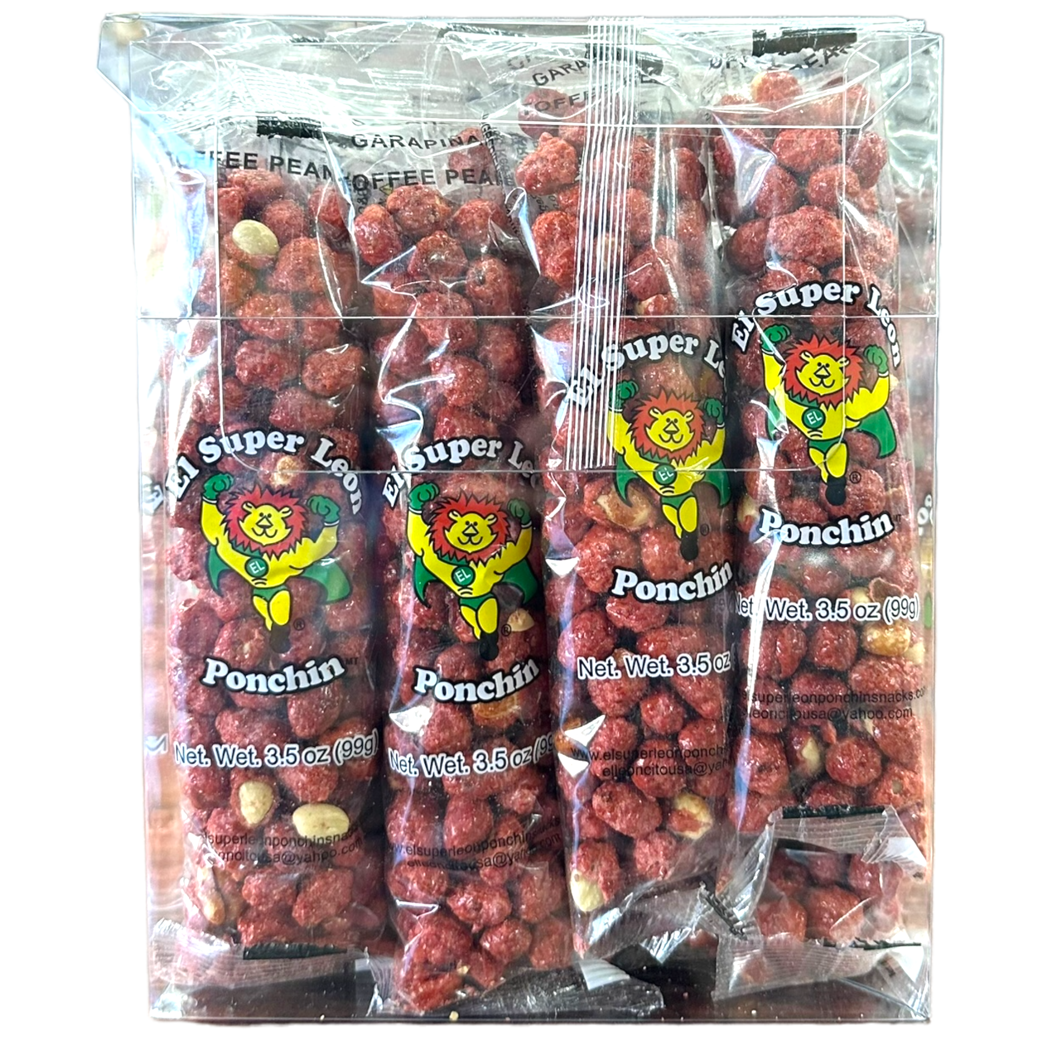 El Super Leon Japanese Peanuts. Delicious Japanese Peanuts in a 24 count display box. Each package is 3.5 oz