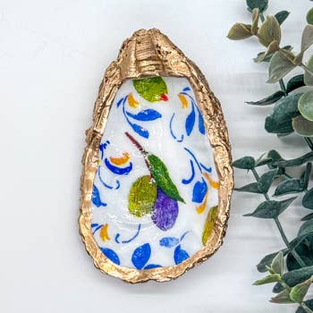 Shop our Oyster Shell Jewelry Dish Collection, a stunning fusion of elegance and sustainability. Each piece is meticulously handcrafted using oyster shells recycled from local restaurants around the DC area. The shells are decoupaged with tissue paper and hand-painted gold. Each shell reduces food waste in Washington DC, making them both beautiful and eco-conscious. Shells come in three sizes: Small: approx. 1.5-2 in. length Medium: approx. 2-2.5 in. length Large: 3+ in. length Features: 1. Recycled Oyster Shells: We partner with restaurants unable to sustain a formal recycling program for their shells. By repurposing these shells, we give them a new life and fight food waste. 2. Versatile Use: Our dishes can be used as decorative accents around your home. Display them on your vanity, dresser, or coffee table to add a touch of coastal charm to any space. 3. Thoughtful Gifts: the perfect unique gift for an eco-conscious individual, beach lover, or appreciator of handcrafted artistry