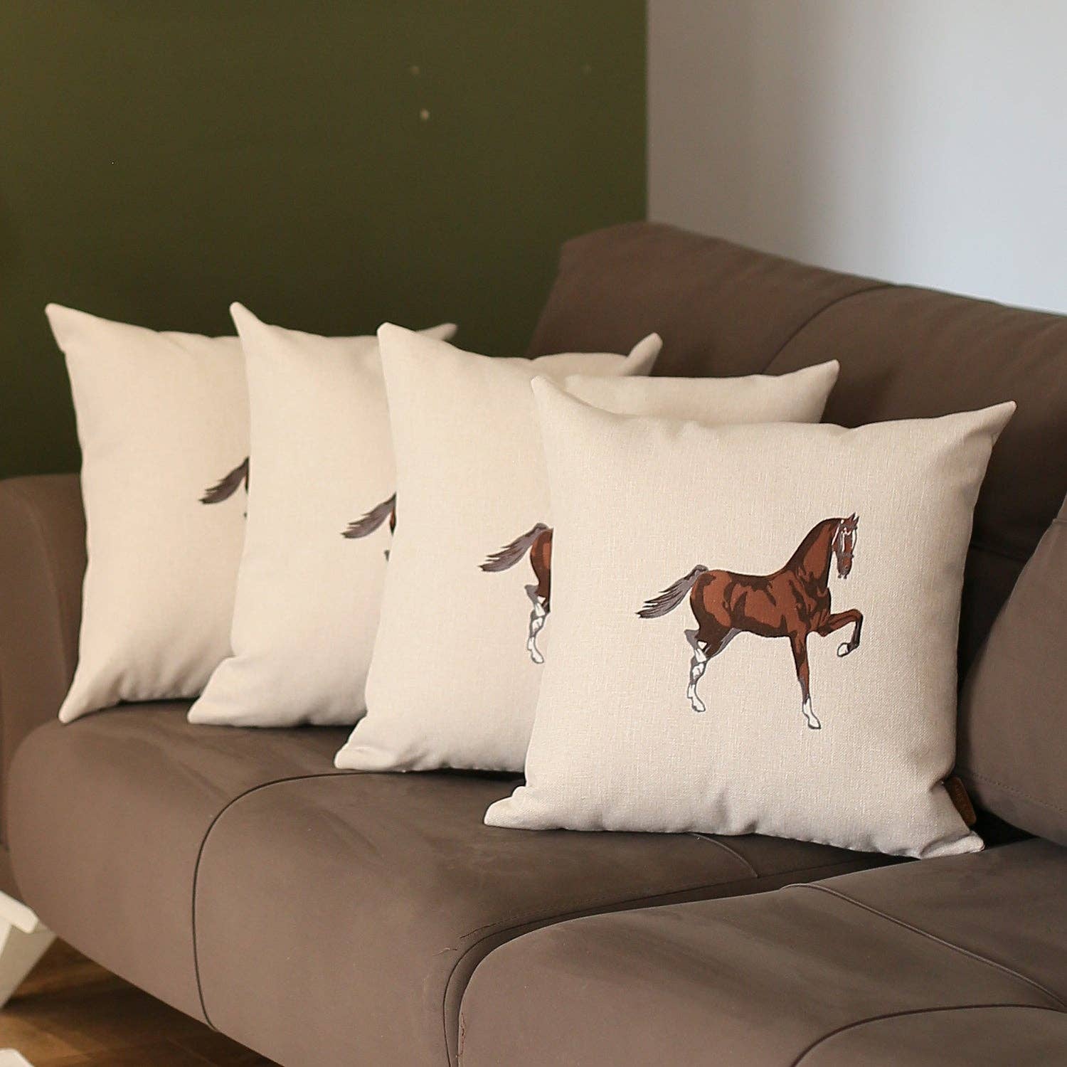 OUR COTTON CANVAS PILLOWS FEATURE OUR ANIMAL MOTIFS ON A GROUND OF FLOWERS OR A GEOMETRIC PRINT. THE PERFECT ACCENT TO FRESHEN UP A SOFA OR BED. PRINTED ON HEAVY COTTON CANVAS BRASS ZIPPER FLANGE EDGE INCLUDES FEATHER/DOWN INSERT MACHINE WASHABLE MEASURES 22"X22" horses, equestrian, riding, saddles. dressage, tack, horse, equine