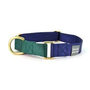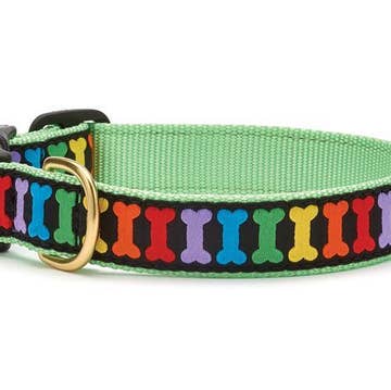 All of our accessories are made on lightweight soft cotton webbing. We use different fabrications, sourced from all over the world, accompanied by solid brass fittings and an adjustable collar. All of our products are handmade and assembled in San Francisco, California. Small fits up to a 13 inch neck. Medium its up to a 15 inch neck.