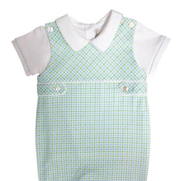 Lil Cactus - Wholesale Overalls - Baby - Blue Gingham Golf Hole Shortall0