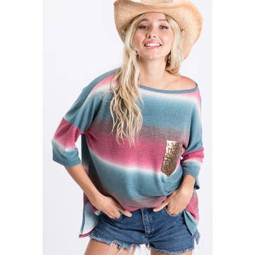 X114-ALEXA COLOR BLOCK AZTEC HACCI TOP