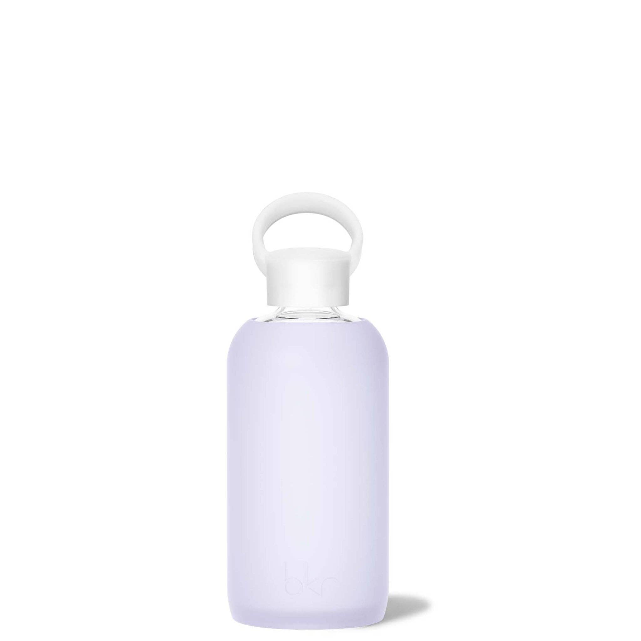 A 500mL Glass And Silicone Water Bottle In Sheer Violet Blue. Shop Now.