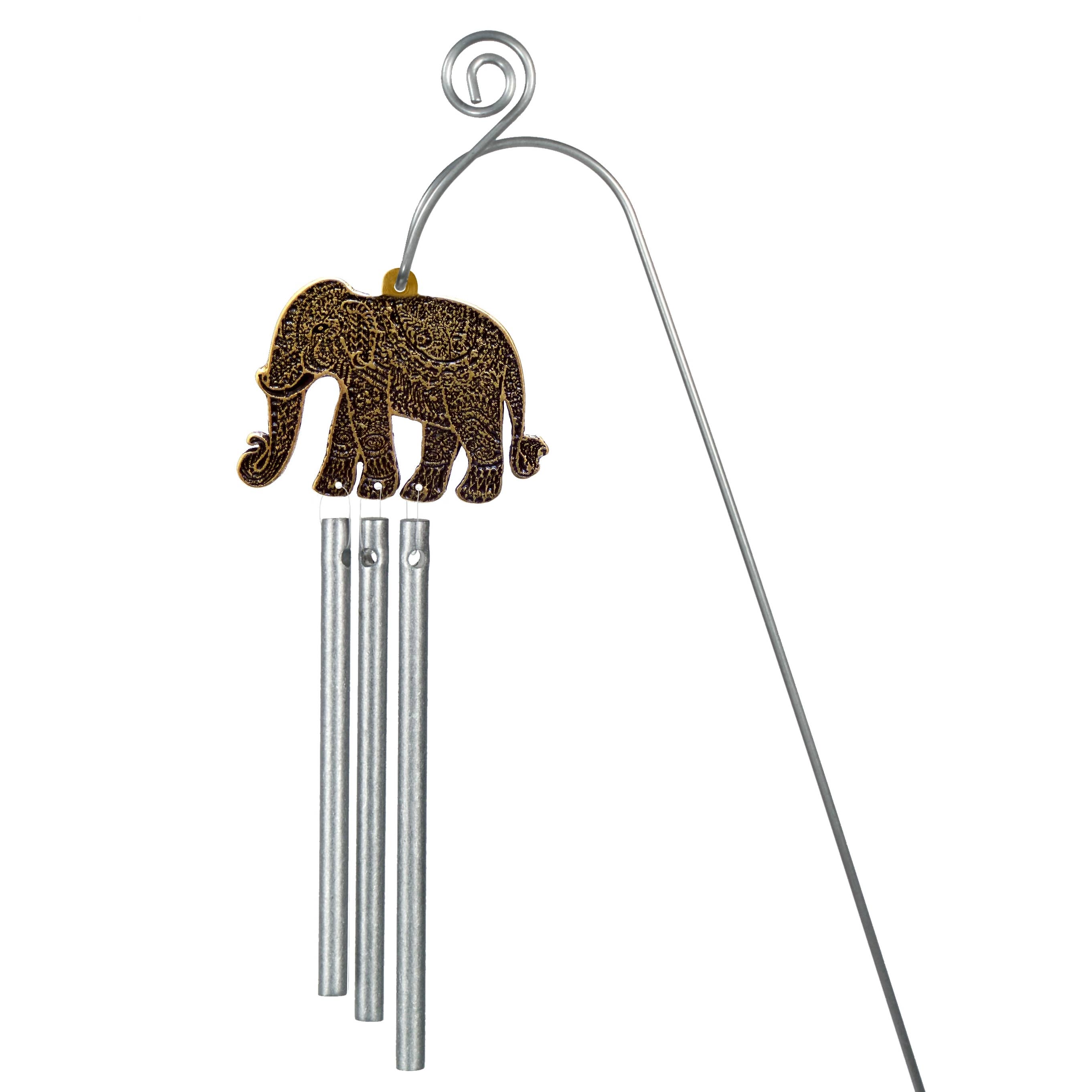 Decorate your garden, vase or potted plant with the gentle chiming of a Musical Plant Adorn-a-ment wind chime. These musical plant stakes feature three perfectly tuned solid aluminum pipes hung from natural, celestial and whimsical shapes perched atop a weather-resistant stainless steel stake. The chime image is cast in metal and finished with antique brass. Made of cast metal and aluminum. Chime with pipes: aprox. 5" x 2". Longest pipe is 3.3". Suspended from an 18" stainless steel stake. Made in the USA. Perfectly tuned in Long Beach California. We make music everywhere we go. Super cute packaging. A countertop display and bestseller pre-pack are available.