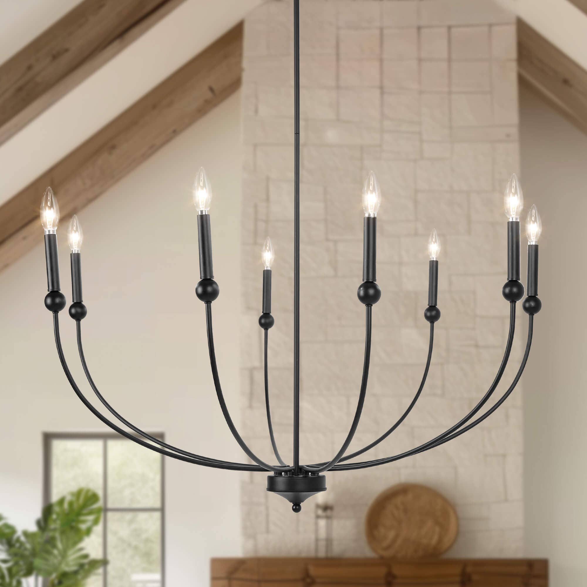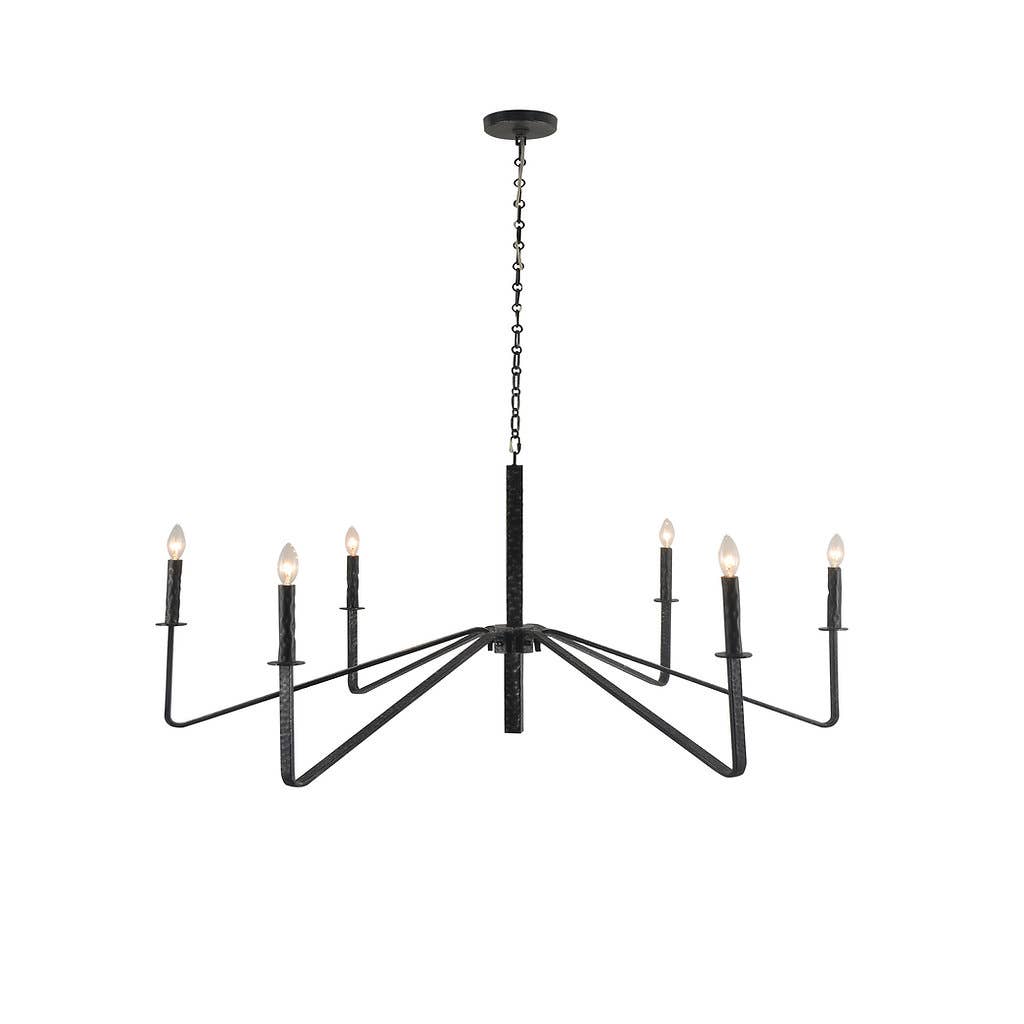 This 6-light adjustable modern chandelier in a black finish is the perfect addition to any modern or contemporary space. It's adjustable arms and elegant design will provide light and style to any room. The black finish will give you're room a timeless and glamorous feel. This chandelier is an eye-catching statement piece that will bring a touch of elegance to you're home. Hard wired 6-light decorative Chandelier Can mount on sloped ceiling High quality finish with open bulb design Compatible with LED Bulbs Standard E/12 Candelabra Bulb recommended Comes with 4-12inch & 1-6inchh rods for height adjustment Rated for installation in dry and damp locations