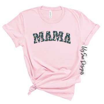 This peachy floral mama design is stitched and hand cut on a unisex fit Comfort Colors tee.