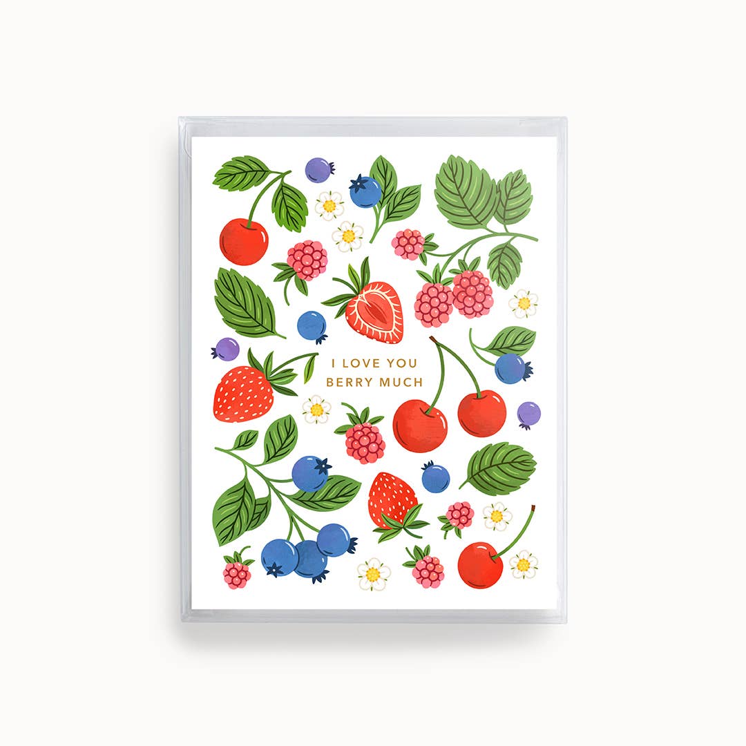 FSC-certified, recycled 110 lb. cover weight paper. Matching recycled envelope. Blank inside. Single card & envelope packaged in a clear cello sleeve. The card is A2 size (4.25" x 5.5") Professionally printed in Southern California. Bear with Basket of Berries Love Card - Yeppie Paper
