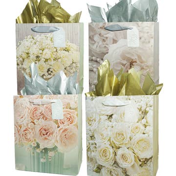 Sheer, reusable organza squares (24" × 24") that replace tissue paper. Add a soft, layered finish to gift bags or boxes. Choose a 5-pc assorted set or 6-pc single color. Every organza wrap includes 1 satin ribbon tie and 1 kraft gift tag. Create your gift presentation with our reusable organza wrap fillers—a zero-waste upgrade to disposable tissue. The 24" × 24" squares nestle beautifully around wine bottles, skincare, candles, and gift bundles, adding elegant texture and polish without bulk. Each set includes kraft gift tags and satin ribbon ties to complete the look. SIZE: • 24" × 24" square (finished edge) COLORS AVAILABLE: (earthy neutrals & cool tones) Royal Blue, Moss Green, Gold, Bronze, Gray WHAT’S INCLUDED (PER SET) 5-Pc Assorted (24" x 24" each): Royal Blue, Moss Green, Gold, Bronze, Gray Includes: 5 satin ribbon ties and 5 kraft gift tags 6-Pc Single-Color (24" x 24" each): Choose one color Royal Blue or Moss Green or Gold or Bronze or Gray Includes: 6 satin ribbon ties and 6 kraft gift tags NOTE: Wine or gift bags shown for styling are sold separately. HOW TO USE WITH A WINE BAG (3 steps) STEP 1: Lay one 24" x 24" organza wrap flat and center the bottle. STEP 2: Gather the wrap at the neck and tie with the satin ribbon. STEP 3: Insert the bottle into your velvet or bamboo-jute wine bag. Add a second wrap at the neck for fullness, fluff, attach the kraft tag, cinch the drawstring. TIP: Use 1 wrap for small gifts, 2 wraps for wine bags, 3 wraps for extra fullness. ALSO WORKS AS A FUROSHIKI WRAP Furoshiki is a reusable fabric wrapping method. Your 24" x 24" organza square can wrap boxes and favors without tape. Box: Place the box on the diagonal, fold two opposite corners over, bring the other corners to center, tie with the ribbon. Bottle (alternative): Center the bottle, gather corners to the neck, tie and fluff. ORDERING (WHOLESALE): • Selling method: By the item • Minimum order (MOQ): 3 sets (mix & match any option) • Ships in protective poly; designed to pair with Beauty Blisss eco gift bags for a complete retail story. BEST USE: Perfect for weddings, holidays, boutiques, wineries, spa/self-care sets, and premium merchandising where a reusable “fabric tissue” makes the display shine. 💚 Pair them with our Reusable Eco-Chic Gift Bags and Reusable Wine Gift Bag under the Beauty Blisss collection for a complete gifting experience. Explore more at www.BeautyBlisss.com
