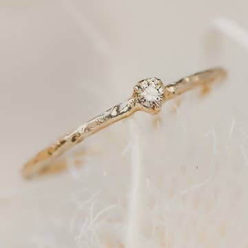 Ash Ring Forged in gold, anchored by a singular stone — a future heirloom with imperfect clarity. This ring features a genuine 3mm salt and pepper rose cut diamond on a solid 14k gold band. - Genuine salt and pepper diamond, 3mm, rose cut - Solid 14k gold, hammered texture - Since these are natural stones, expect variation in color in each diamond - Case size is for one ring Everything you see in my store is entirely handmade by me in my studio in Philadelphia, PA. If you have any questions about custom sizes, stones, or materials, please reach out to me!