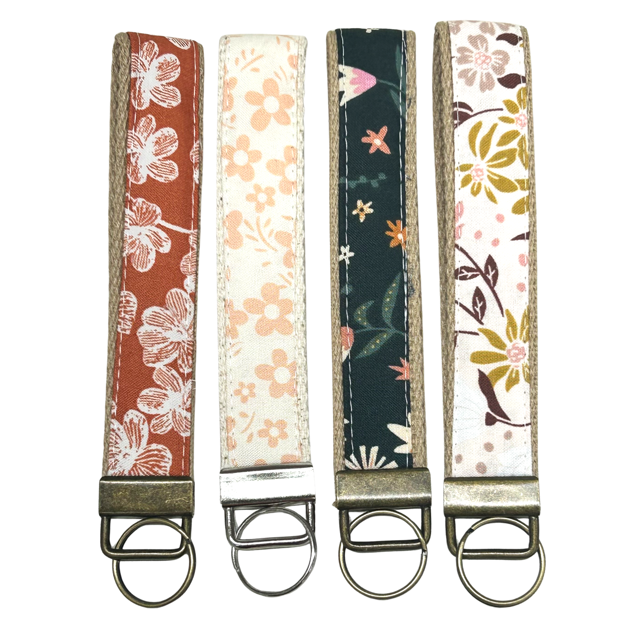 These wristlet keychains are handmade with 100% cotton lined with interfacing for durability. Each keychain is unique in appearance and may show a variation in fabric print due to the fabric cut and how the print repeats. Each keychain is approximately 6 inches long and 1 inch wide. These are a perfect gift idea for others or yourself. The size makes them easy to find in purses or bags, and gives a hands free option when slipped on your wrist.