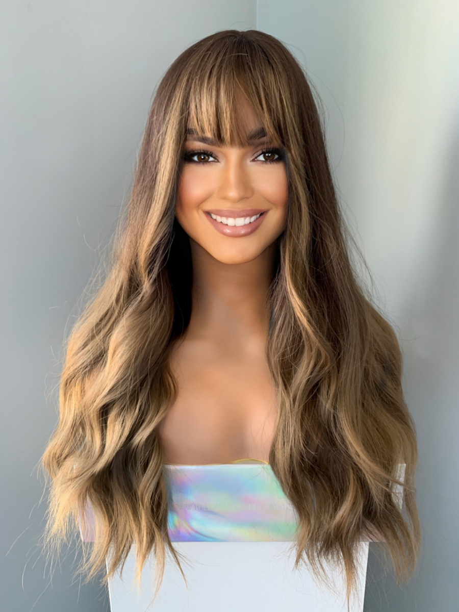 You get a set of 2 50gram ponytails - each constructed with the silkiest hair on a nice sturdy hair elastic. These hairpieces are so unbelievably easy to add to any hairstyle. You just put her natural hair up in a ponytail or bun and then easily add these on top. So lightweight and easy to wear! This hair is dark brown/black to red ombré curls. They are approximately 20” long and can be trimmed.