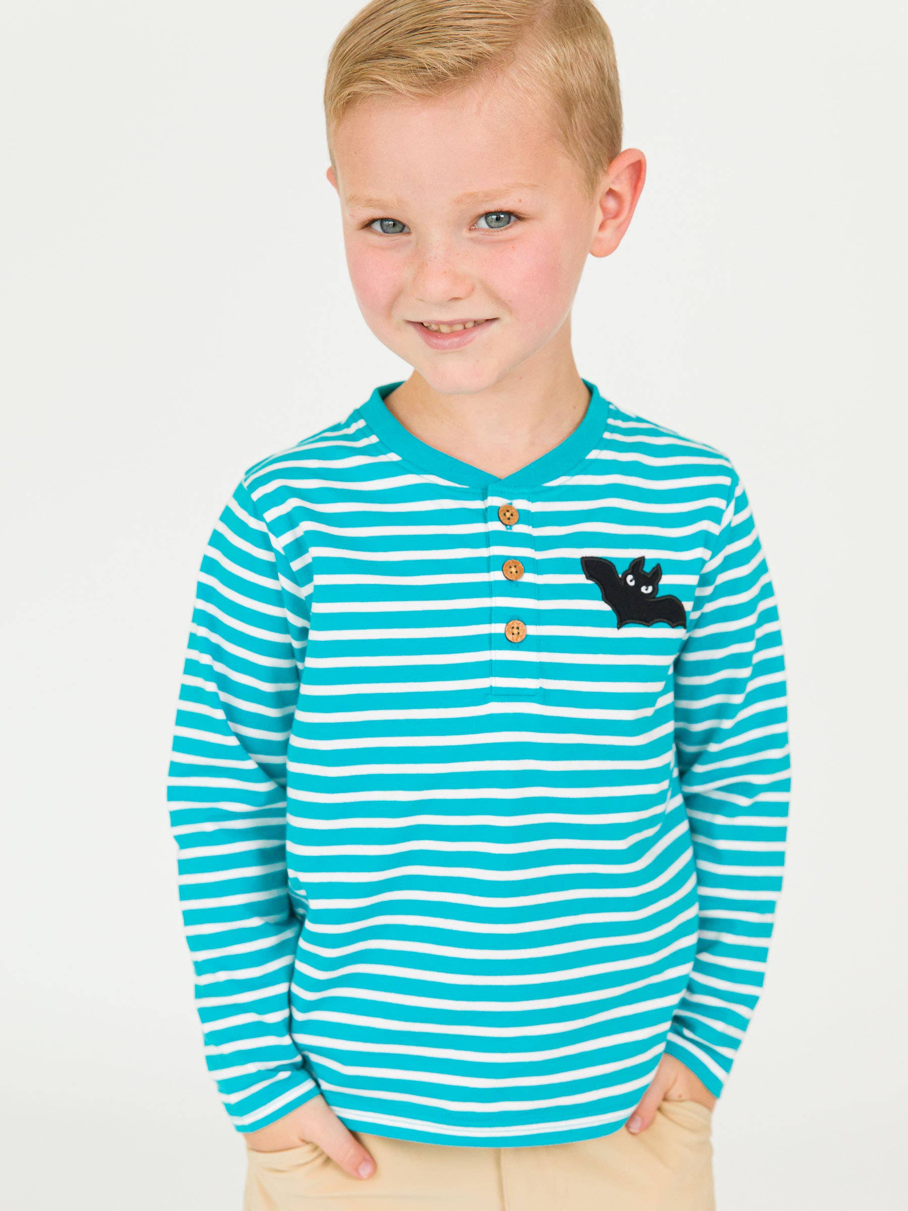 This super soft long sleeve sleep set will keep little ones comfy without compromising on style. Tagless for added comfort. Made from our premium SoftSnooze™ bamboo viscose fabric, these jammies are super snuggly, breathable, and gentle on sensitive skin. Perfect for keeping cozy in the winter yet cool in the summer. The grow-with-me stretch means growing little ones can wear these pajamas for longer! The fun comic book print is perfect for your little superhero! Pairs well with Tangerine, Island Blue, Dark Navy, White. Care Instructions: Machine wash cold; only non-chlorine bleach when needed; tumble dry low / To prevent damage and to extend the life of the garment, use laundry bag in washing machine and dryer. Fabric Content: 95% Viscose from Bamboo, 5% Spandex Reference Code: B838