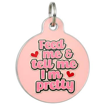 Enamel Pink Dog Tag w/Scannable Pet ID - Tell Me I'm Pretty