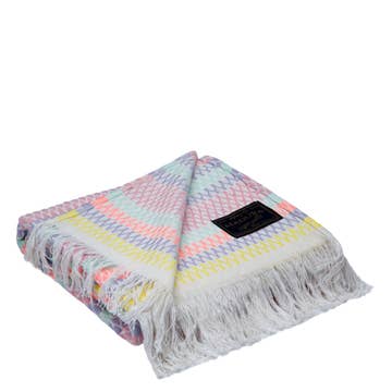 This throw blanket adds a splash of color and texture that your room has been missing. It features a chunky large-scale weave in entwined shades of cool green and coral, perfect for a modern coastal look or to put a fresh take on your everyday style.