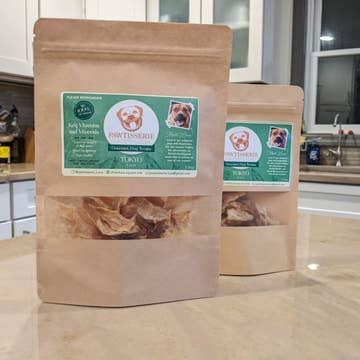 These crunchy treats are made with hero ingredients selected for their nutritional values (and super pawers). Kale, broccoli and kelp are famous superfoods that need no introduction. Garbanzo flour adds in yummy plant protein in each bite. 100% organic ingredients. No soy, corn, wheat or dairy. Vegan. INGREDIENTS: Organic coconut flour, organic garbanzo flour, organic kale, organic broccoli, organic kelp, organic flaxseed meal. GUARANTEED ANALYSIS: Crude Protein .......... min 18% Crude Fat ................. min 7% Crude Fiber .............. max 8% Moisture ................... max 11% 3300 kcal/kg or 5 kcal/treat. **PLEASE NOTE: Colors of our biscuits may vary slightly from batch to batch due to natural variations in ingredients.