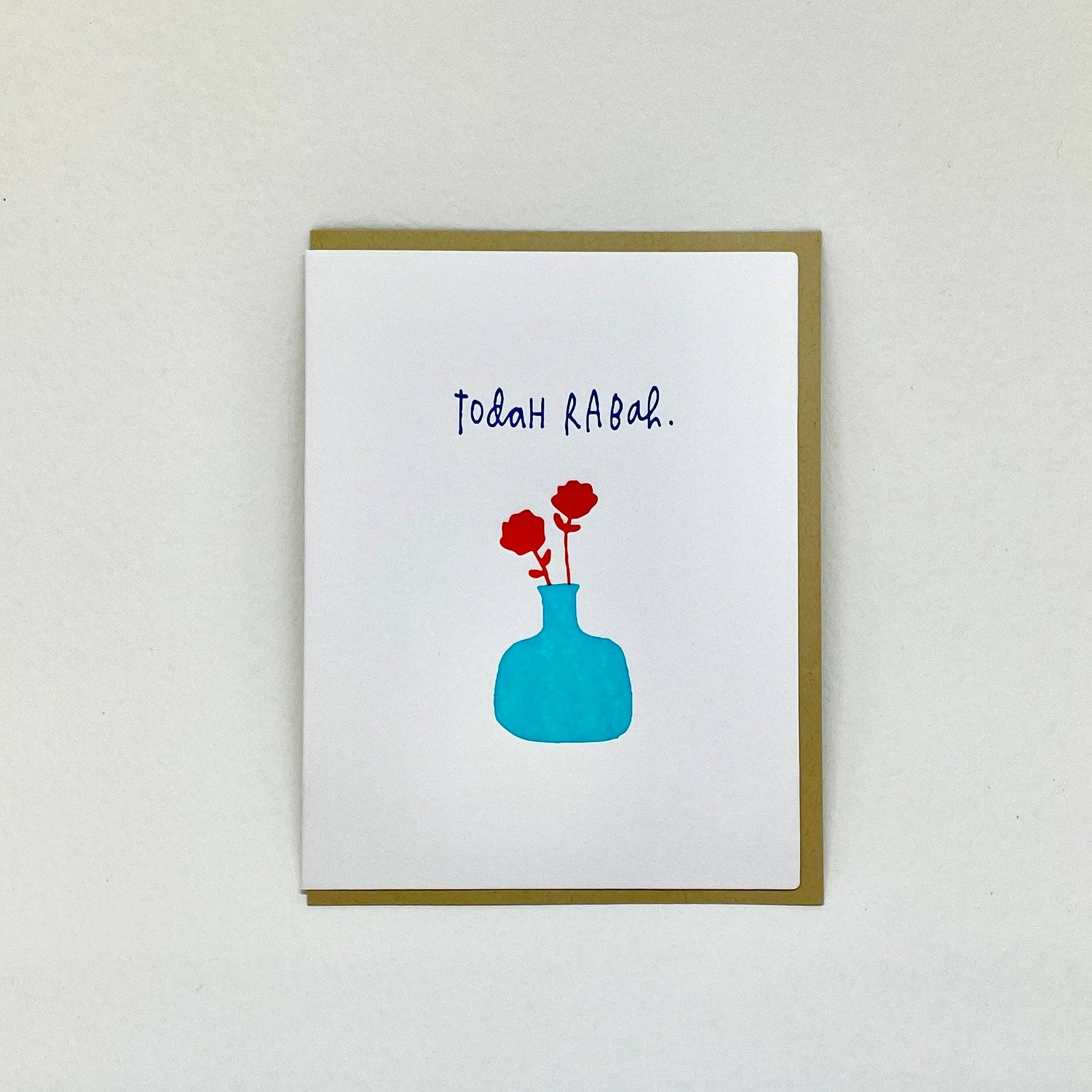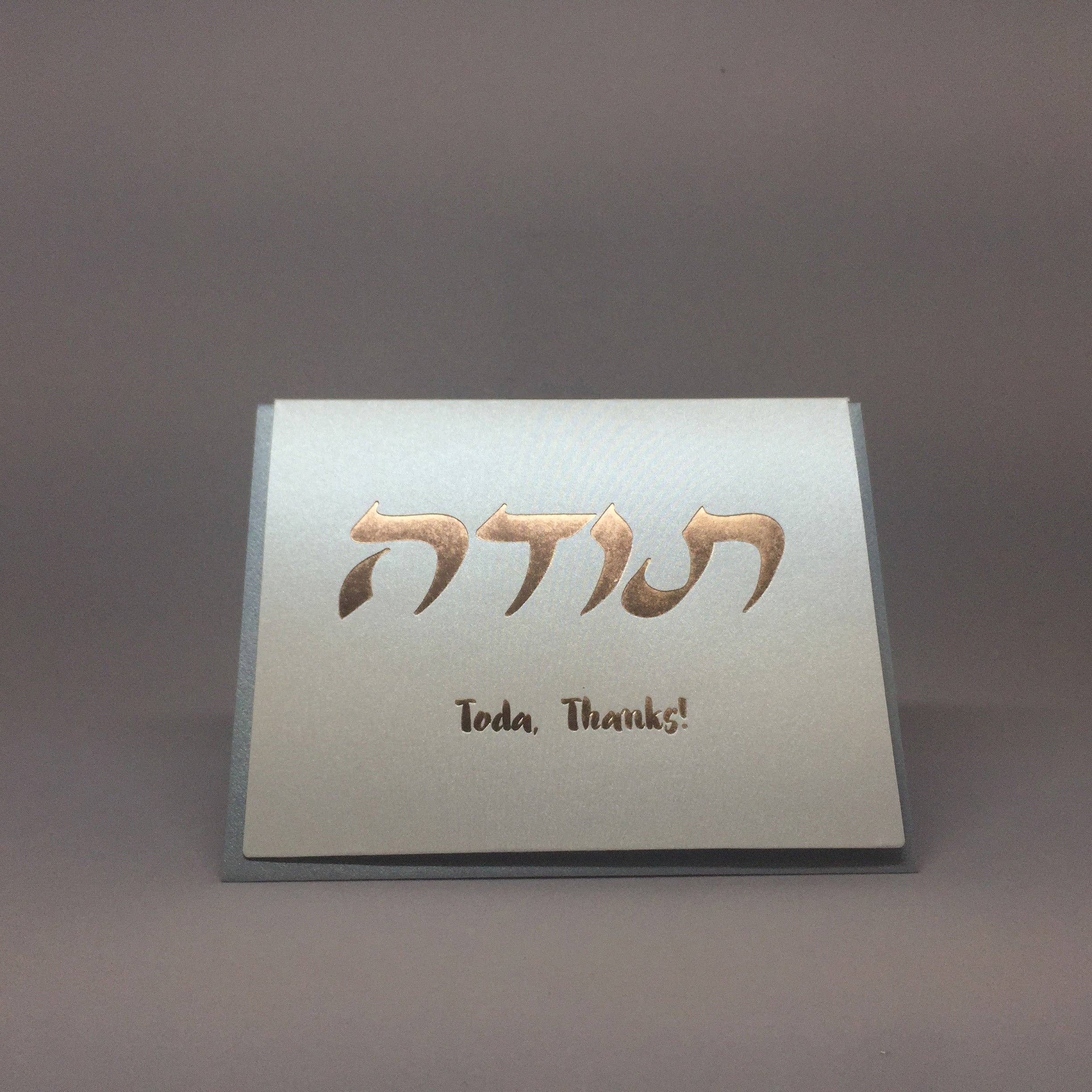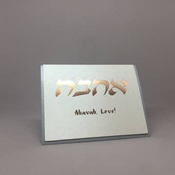 This greeting card was designed by our own William Muller as part of our Jewish Heritage Collection and then printed on fine heavy weight paper in our studio in Easthampton, Massachusetts. This card features Hebrew type foil stamped in rose gold on a metallic paper, and is blank inside. 4.25" x 5.5"