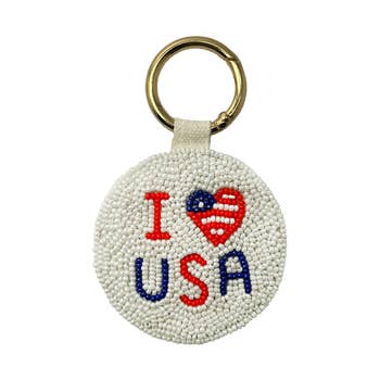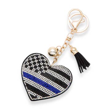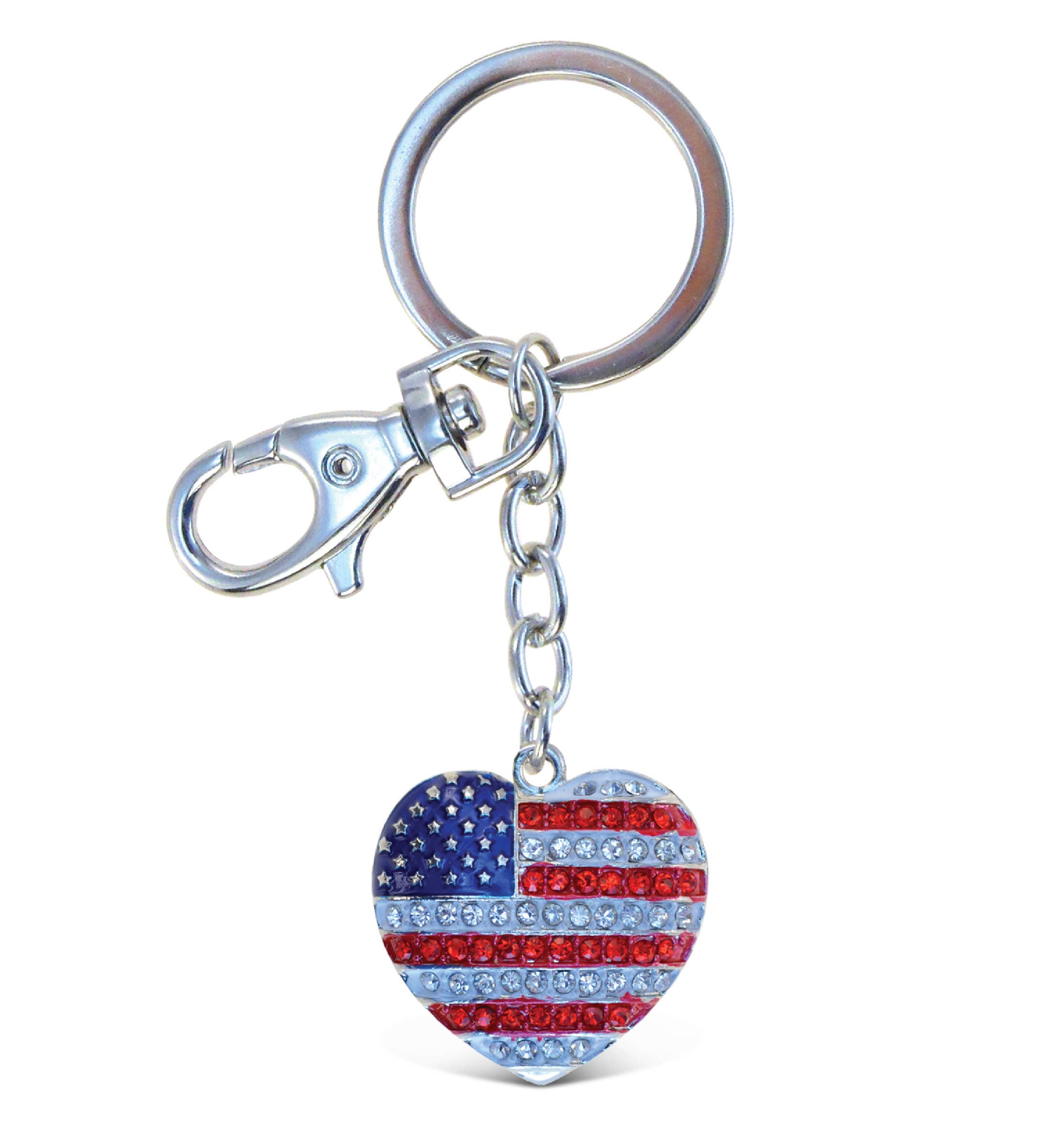 Aqua79 USA Flag Heart Keychain - Sparkling Rhinestones Charm with Tassel, Fashionable Stylish Polyester PU Flag Key Ring Bling Crystal Jewelry Accessory Clasp For Keychain Bag, Purse Backpack