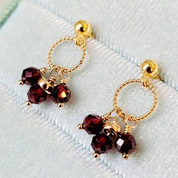 Petite Red Garnet Drop Earrings | Red Garnet Earrings