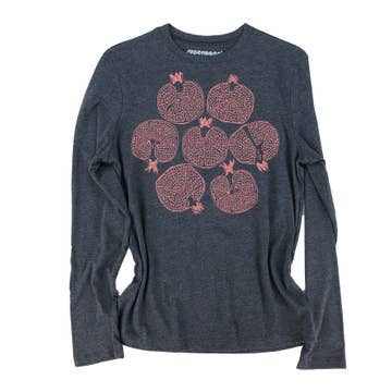 Shirt color: rouge (a pinkish red). Ink colors are deep plum and dark green. 55% cotton, 45% polyester. Inspired by our love of root veggies and farmer's markets, the humble red beet gets a lovely Art Nouveau makeover in our newest design. It's almost too pretty to eat. Printed on a cap sleeve jersey knit top. This comfortable style has the casual fit of a boxy top, but the super soft mid-weight fabric gives it a luxurious feel and a feminine drape. Model shown is 5'8, size 8 (36B bust), and is wearing a MEDIUM in this style. A truly accommodating style for a variety of body types, this roomy top has a similar fit to our popular rolled cuff tees. However, because it has a true boxy cut, it does run a bit larger. So we generally recommend sizing down. Currently available in sizes S-XL. Due to limited quantities, 2XL available by request only.