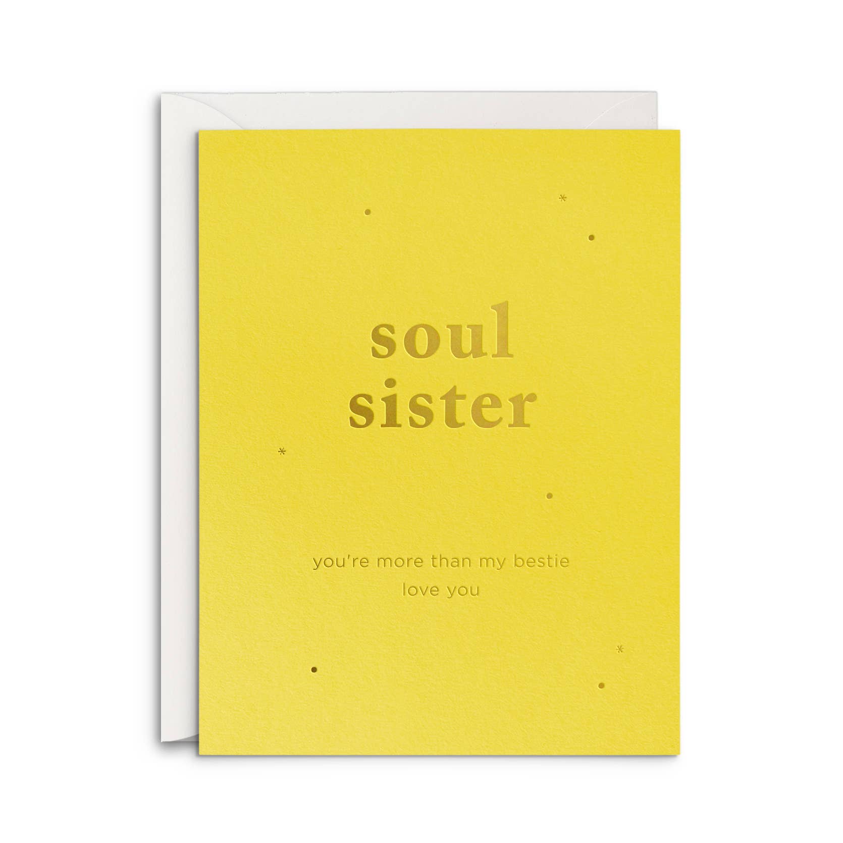 They say that your sibling is the most valuable relationship you will ever have; this is the one person who knows you like no other... they grew up with you in your home, and shared in traditions, holidays, and memorable moments. They are also, the ones who have seen you through all of your major milestones in life. They'll be the ones there when you lose your parents or grandparents, they'll understand the importance of the values that were instilled in you. So why not celebrate them as best you can because the bond you two share is unbreakable. Take a closer look: this is our Sister Connection e card. Made on white 110lb card stock with cut images of two sisters connecting in conversation. Finished with gold foil accents and jewelry on the sisters. This card comes with a coordinated envelope as well.