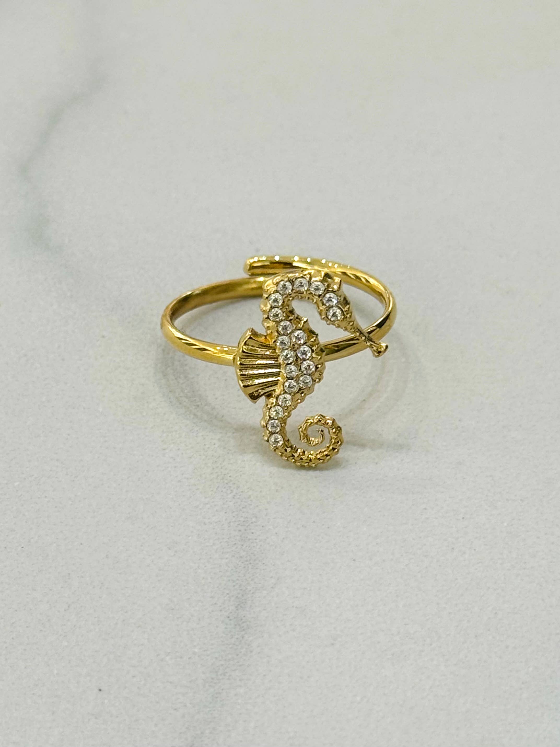 CASSETTE - Minimal Crown Ring Color : Gold & Blue & White Material : Stainless Steel ( 14k Gold Plated ) & Zirconium Stones WATERPROOF Size is adjustable Nickel & Lead Free HYPOALLERGENIC DAIMI