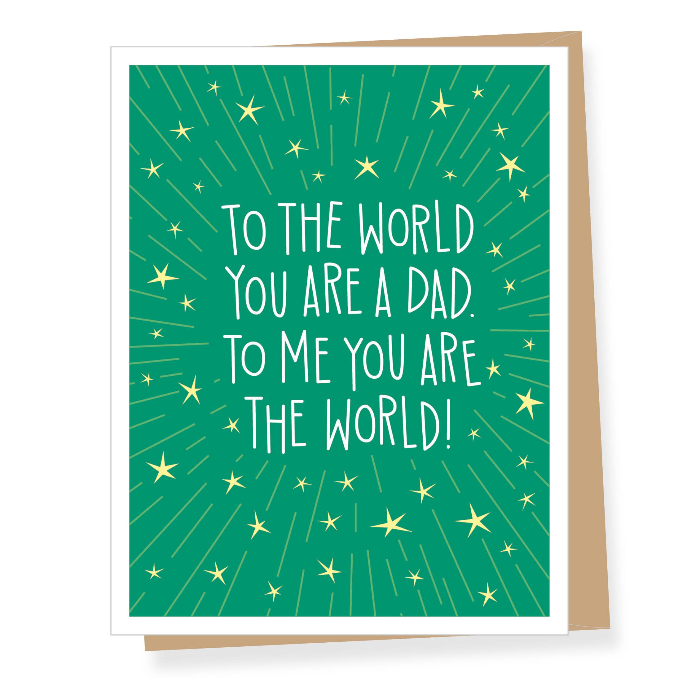 Thanks for all your help, Dad. - size A2, 4.25 inches by 5.5 inches folded - offset printed on bright white paper - packed in a cello sleeve with corresponding envelope (color may vary) - blank inside, ready for your own special message! - printed locally in California, assembled in our Los Angeles studio