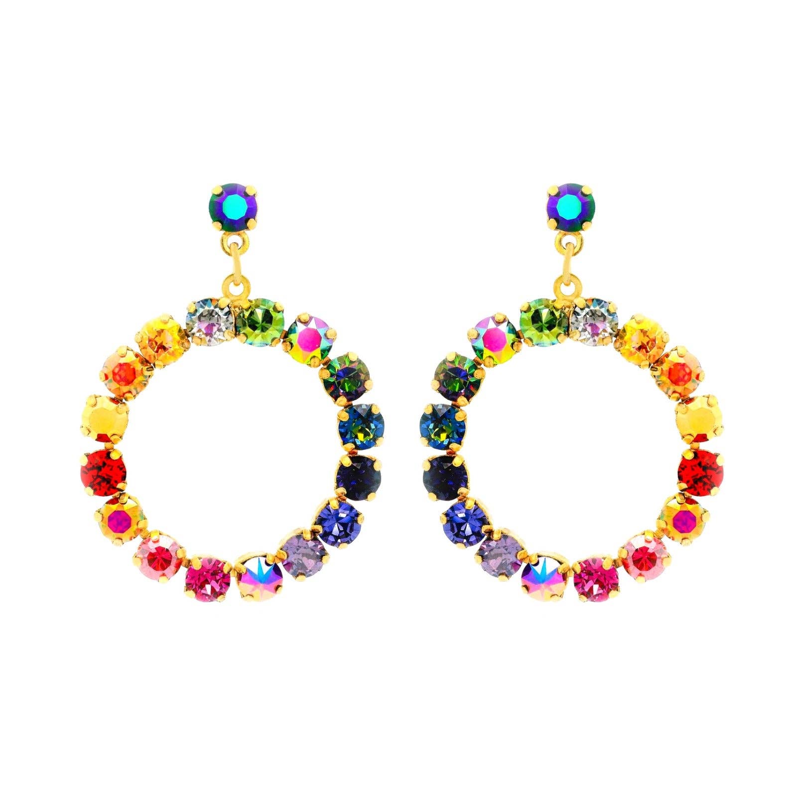 Threader earrings that pop with a colorful ring of beads. This on-trend style is sure to be a hit! Fair Trade from our artisan partners in Northern Thailand. Comes carded with artisan info and UPC. 1.75" drop. Hypoallergenic brass.