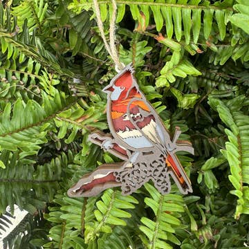 Mr Wood Pigeon birch plywood decoration. Each decoration is approximately 10cm on the longest side and have been printed onto laser cut 3mm sustainably sourced birch plywood. My external Printers are FSC and PEFC certified through the Soil Association, giving you extra piece of mind that my work is fully sustainable and run ethically. Waxed brown twine attached with a printed Kraft tag.