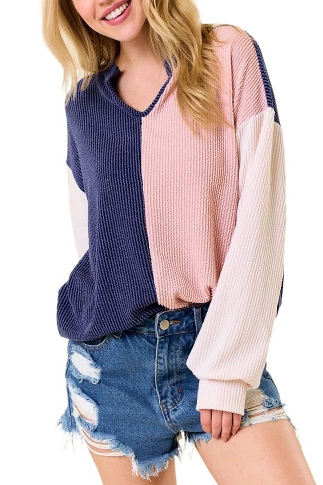 Color Block Ribbed Women's Knit Top T5618