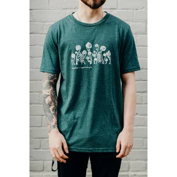 SKU: SFO717-SM Made in United States Aesthetic: Outdoor and Retro / vintage Care Instructions: Machine wash Color: Green Fabric: 100% Organic Cotton Fit: Unisex Neckline: Crew neck Occasion Theme: Everyday Occasion: Everyday and Loungewear Season: Core Sleeve Length: Short Sleeve Theme: Nature Product Language: English Weight: 240.4 g (8.48 oz) UPC: 840150332763 Product Materials: Organic Packaging: Plastic-free and Recyclable Production: Ethically sourced