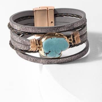 Wholesale Turquoise Stone Beads Woven Wrap Bracelet