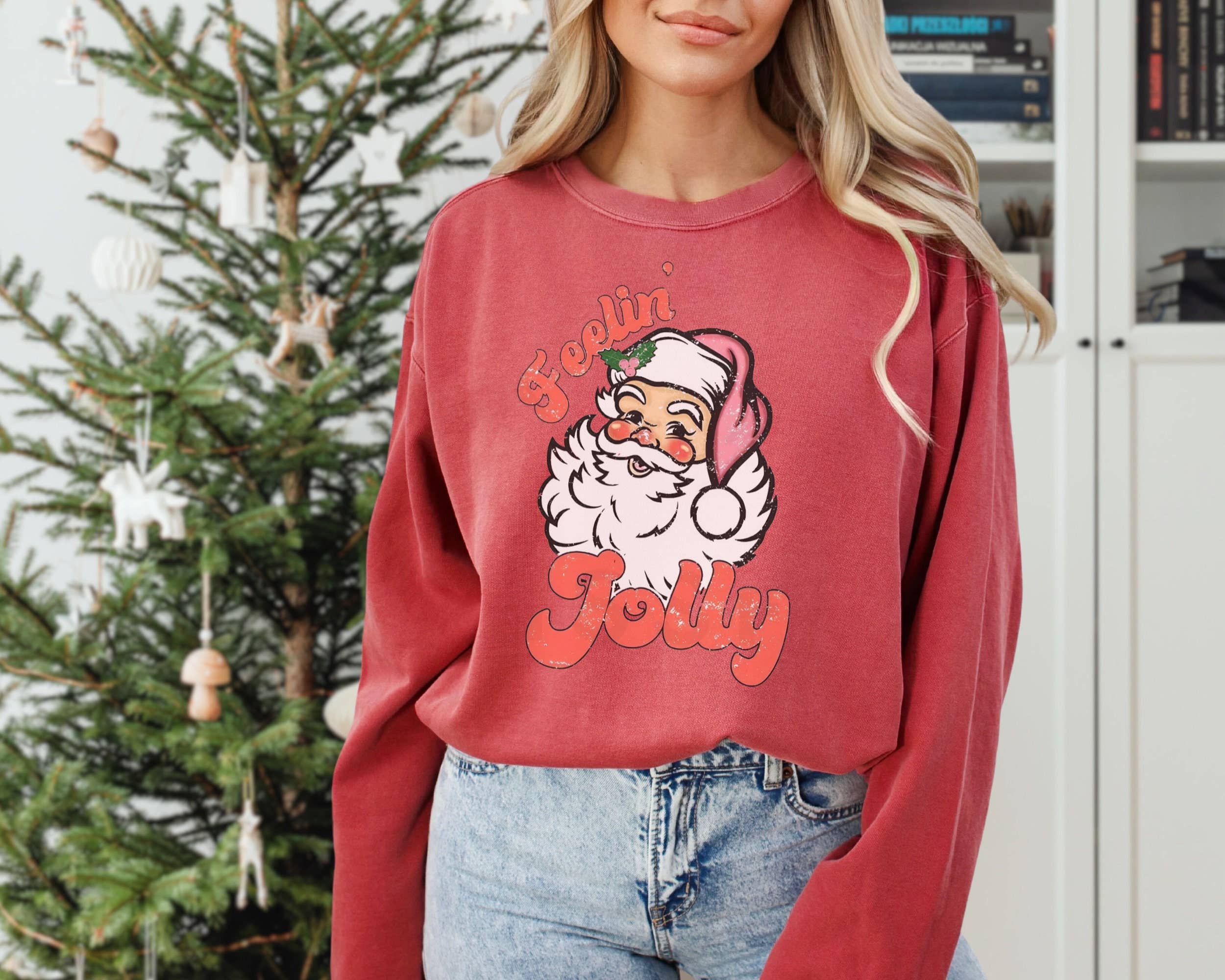 I Saw Dolly Kissing Santa Clause Pink Thrifted Sweatshirt