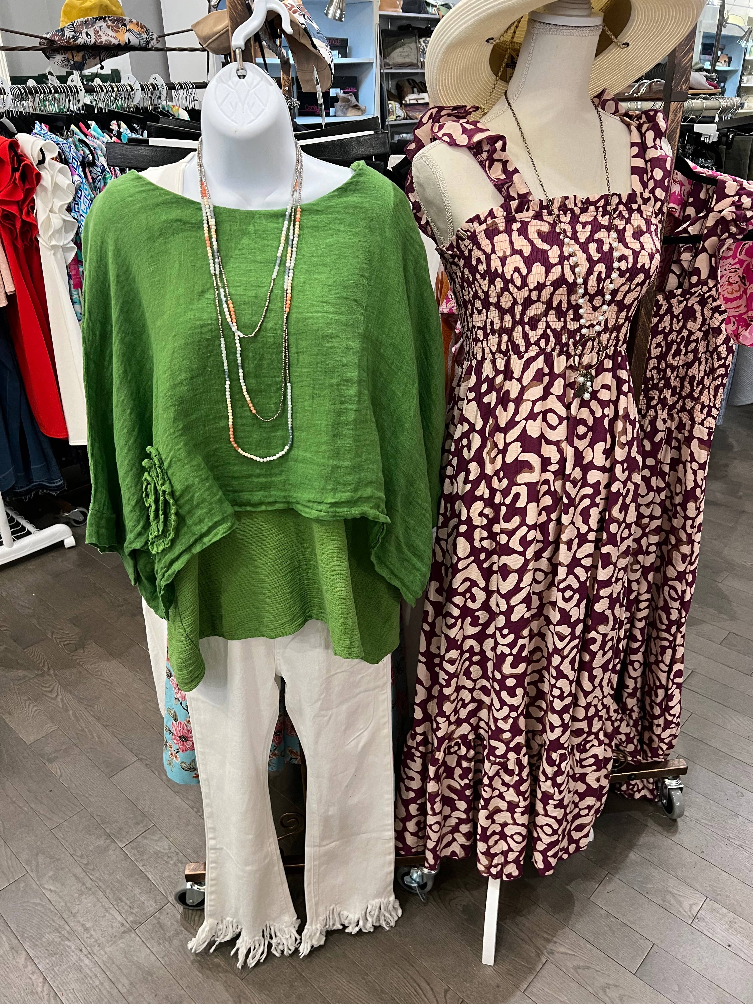 * This chic dress adds a vibrant and feminine touch, creating a romantic look The smocked panel provides a fitted and flattering waistline The bubble sleeves add a playful and trendy element, adding volume and movement The high waist design elongates the legs and creates a flattering hourglass shape Brand labels are not included by default. If needed, please add them via this link ($0.50/pc): https://www.faire.com/product/p_kzks8vegvk