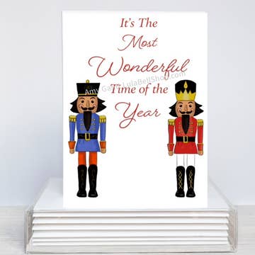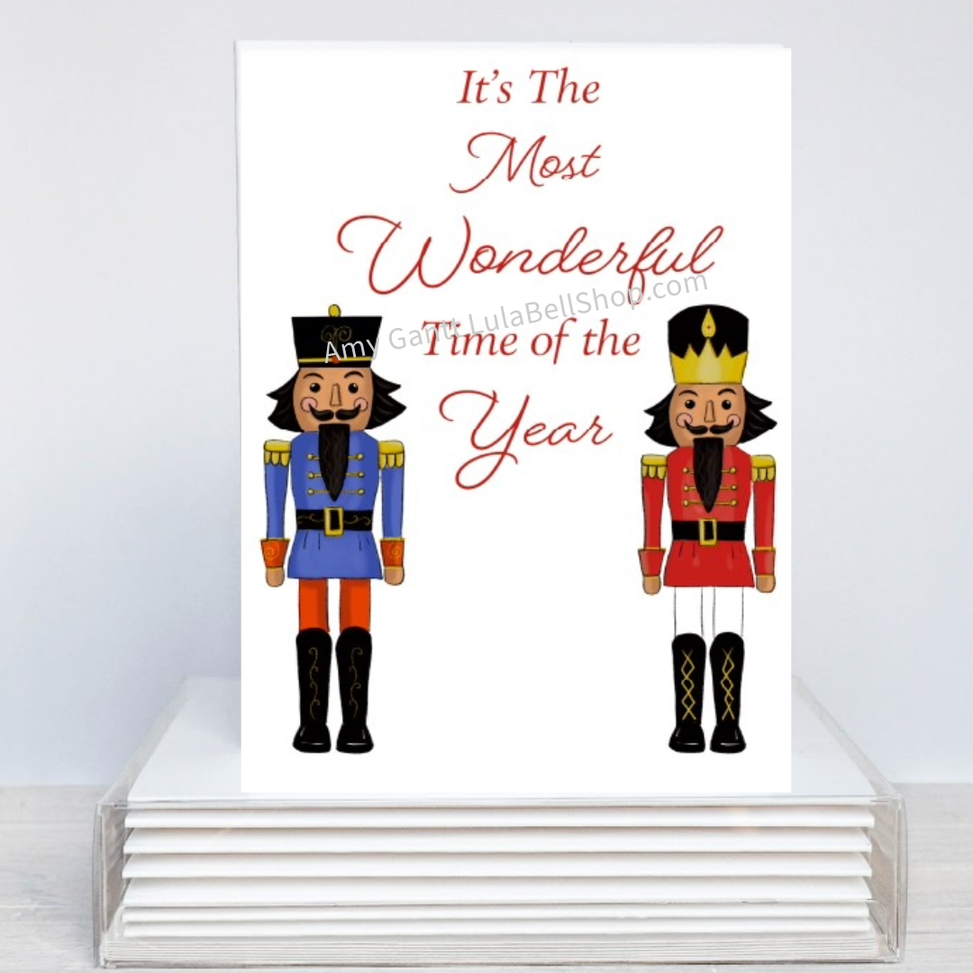 Celebrate the joy of the holiday season with our enchanting greeting cards. Each card is designed to capture the essence of the festive season with intricate illustrations and vibrant colors. Spread warmth and cheer with these high-quality cards, perfect for family, friends and colleagues. From nutcrackers to a tangled mess of christmas light, our collection offers a variety of designs to suit every recipient. - A2 size (4.25 x 5.5 inches folded) - Includes a white envelope - Professional printed in Canada: 14pt paper (100 lbs / 310 gsm) with a semi-gloss coating and an uncoated blank writable inside - Individually packaged in sustainable plastic sleeves for convenient in-store display and sale