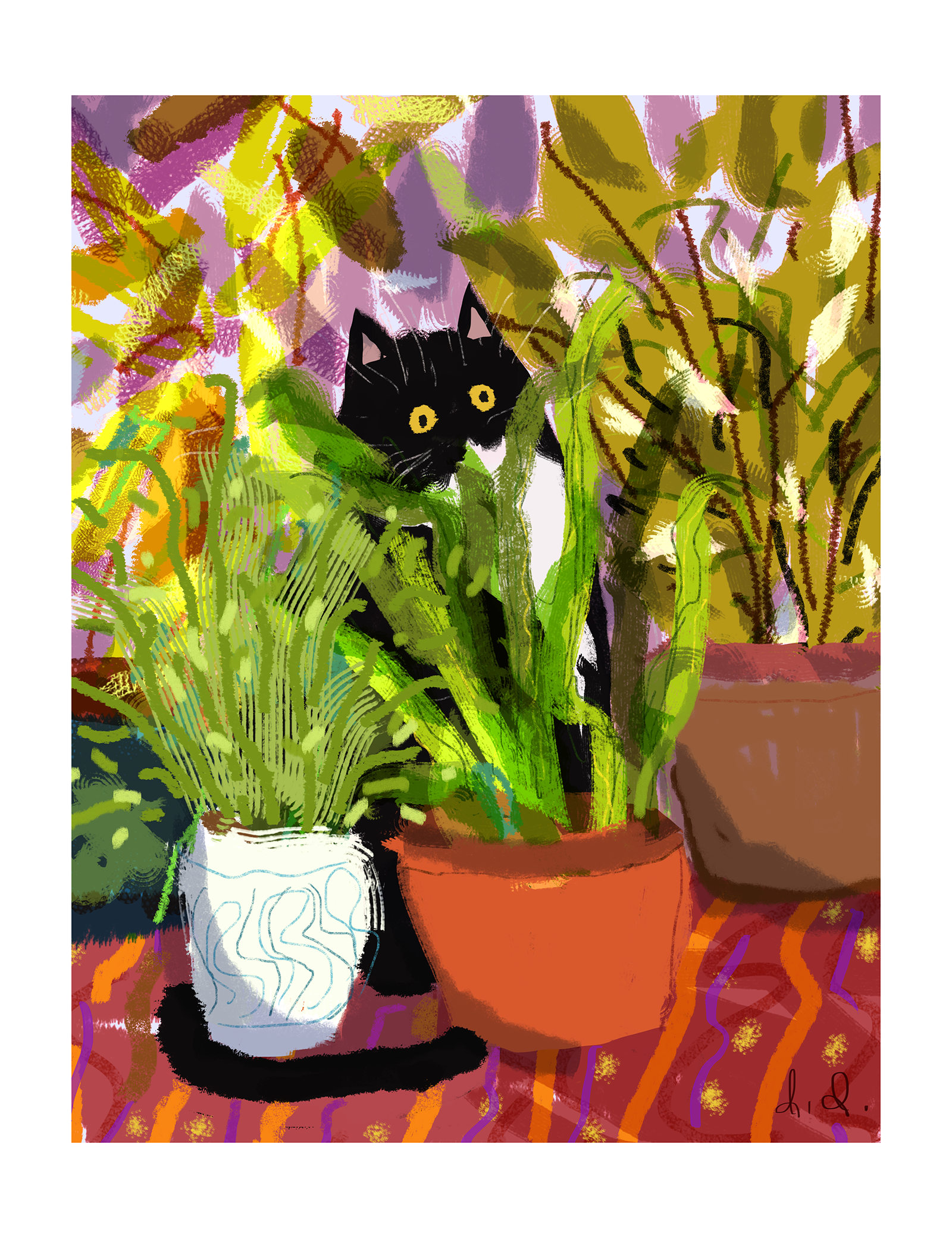 Prayer Plants Black Cats Giclée Art Print 8 x 10"