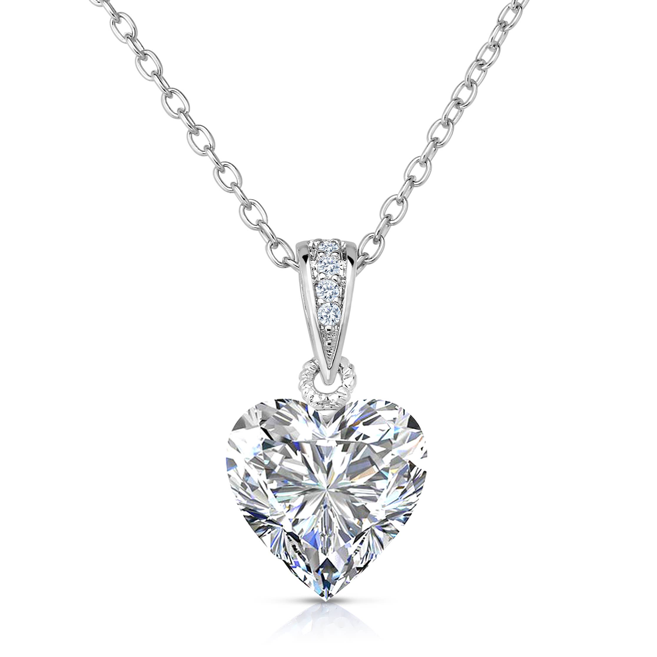 Get this shiny sparkling open heart necklace with any style. The pendant has 16 cubic zirconia stones inlaid on a stainless steel heart. The pendant measures 1 inch in length by 13/16 inches wide. The pendant is paired with a 19 inch chain and fastens with a lobster claw clasp.