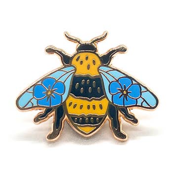 A sweet little honeybee. With this purchase you’re not only supporting an independent artist, but also real bees! A $1 from every bee pin purchased is donated to The Bee Conservancy, Project Apis m., and Detroit Hives to help protect and preserve our planet’s little pollinators. Made with high quality, polished copper plating and hard enamel. Size: 1.25in x .75in. Black rubber clutch for secure fastening. Plastic-free packaging