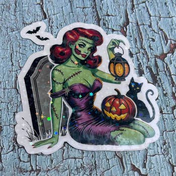 All stickers are original hand-drawn and inked lowbrow art. We then custom printed on thick 4.3 mil semi-gloss vinyl with an outdoor rated life of 3-5 years and then laminated to your choice of gloss or matte finish. Stickers are made to order and processed in-house here at our Las Vegas small business office. About this product: - Waterproof, fade-resistant, & scratch-resistant - 4.3 mil air release vinyl - gloss or matte finish - eco friendly inks - Available in 11 approximate sticker sizes from 2" - 12" - Sizes are based on longest side of sticker. Monsters & Martians - We stand alone in the specialization of the ultimate in Wicked 'n Twisted Rockabilly, Psychobilly, Sexy Pinups, & Horror Punk Monster Alien artistry that will blow your mind! For all fans of Halloween, classic monster movie horror, zombies, voodoo, demons, devils, lowbrow art, kustom kulture, occult, horror punk, goth, gothic, skulls, hot rods, gasser, rat rods, fink monsters, B-Movies, sci-fi, aliens, and UFOs.