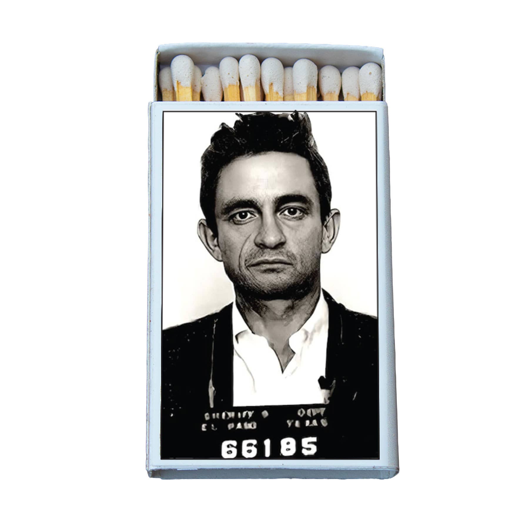 Another BIG HOUSE product! Matchbooks, packages of 50 pieces. Vintage mug shot on the front and saying on the back. This is for a box of 50 identical images. New pictures to follow once I get a chance to shoot them! But picture on the front, saying on the back.