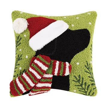 18" x 18" hand hooked pillow, made with 100% natural wool. Zippered velveteen backing with poly-fill pillow insert. Designed in Vermont by Laura Megroz. Handcrafted in India. Member of the Fair Labor Association.Care Instructions-- Do not machine wash or dry clean. - All of our hand-hooked wool products can be gently spot cleaned with a clean soft sponge or cloth using a solution of mild soap and warm water. Wipe up spills as soon as they occur. Blot (don’t rub) with damp sponge or cloth. Rinse and blot excess moisture with a clean, soft towel. Air dry. Do not pull stray loops or threads. - It is normal for a stray loop or end to pop up from time to time. Simply snip off with a scissor.