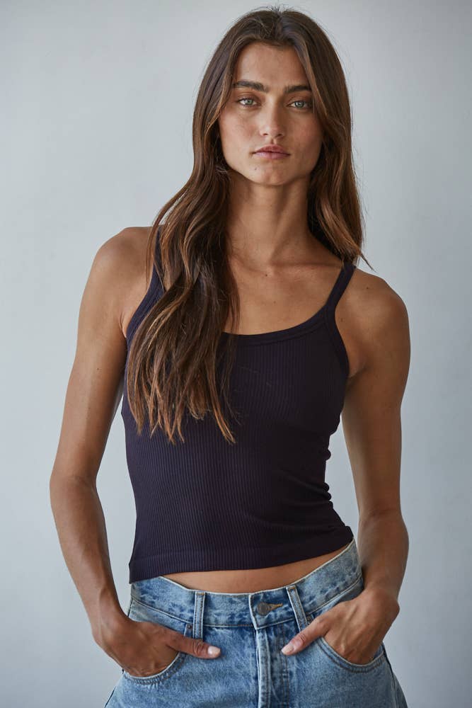 Solid Ribbed Knit Cami Top