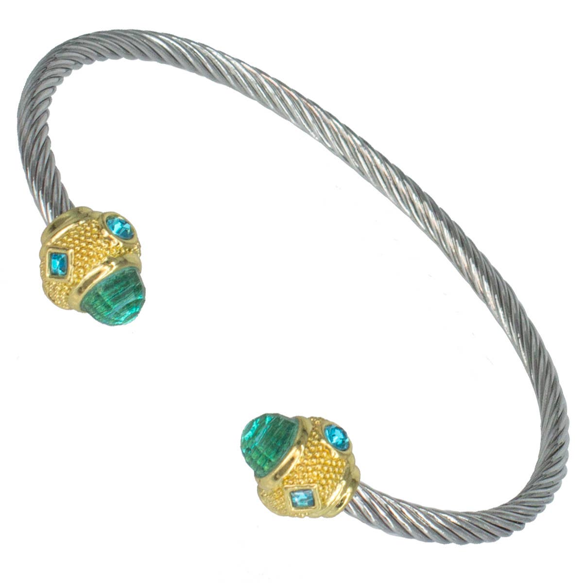 Wholesale AB-1024-BT Sterling Silver Twisted Cuff Bangle with Blue Topaz Quartz Accents