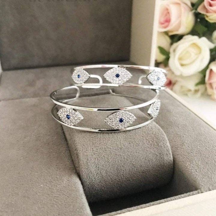 This artisan-crafted cuff Bangle features two faceted Blue Topaz Quartz, beautifully set at each end of a Sterling Silver twisted rope band. The caps are enhanced with Balinese scrollwork, adding depth and traditional detailing. A versatile wholesale piece, this Bangle blends brilliance with timeless silver artistry, making it an attractive choice for retailers and bulk buyrs. * Material : 925 Sterling Silver * Stone : Blue Topaz Quartz * Lock : Hinge Lock * Finish : Polished with oxidized detailing for contrast * Style : Artisan / Elegant / Classic / Bohemian * Origin : Handcrafted in Bali, Indonesia