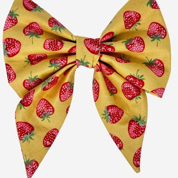 black print with yellow lemons Bow ties xsmall - xlarge collar flowers xsmall - large hook and loop strap to attach to collar