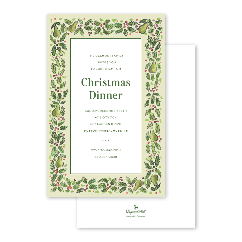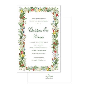Our Holly Berry invitations are printed and foiled in Memphis, TN. Full color ink printed on natural white paper, letterpress printed in foil, and paired with natural white envelopes. Each invitation is embellished with foil accents with plenty of room for you to write or print all the necessary details. Sold as a Box of 10 invitations with blank envelopes or Bulk of 100 invitations with blank envelopes. Dimensions | 5.5 x 8.5 inches. Quantity | box of 10 or bulk 100