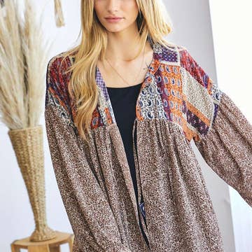 Embrace the elegance of crochet with our OLS-4514 TAUPE, an all crochet high-low cardigan from Origami Apparel. As a part of our young contemporary women's wholesale clothing line, this cardigan epitomizes our commitment to creating stylish, on-trend pieces. Designed in Downtown LA, this cardigan draws inspiration from lace and crochet, enhancing any outfit with its timeless appeal. Ideal for adding a layer of warmth and style, it's a must-have addition to your wardrobe.