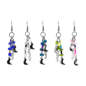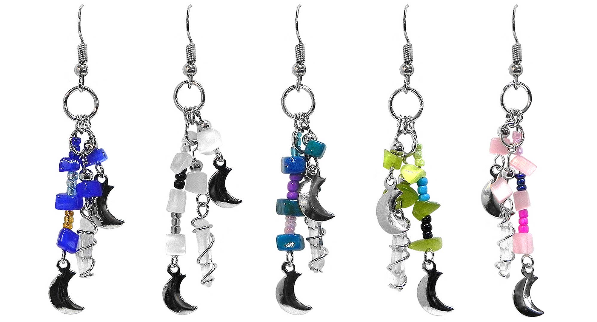 These lunar earrings will bring a magical light to your look. Each earring is hand made from stainless steel wire and findings. The stainless steel crescent moons are polished to a mirror finish and the beads used are hemalyke and glass, finished with a cut crystal drop. They can be worn with Gothic, fantasy inspired, steampunk or any other outfits you wish. This design is the perfect pair with one of my necklaces or rosary chains! They also go really well with layers of stacked silver statement necklaces. Total earring drop length: 3 inches Weight per earring: .15oz