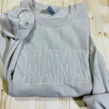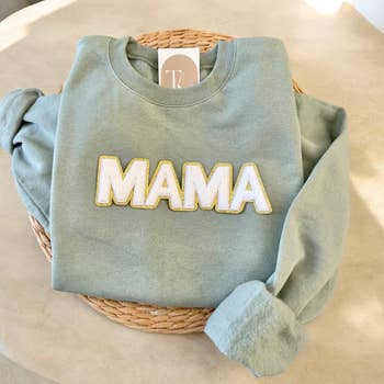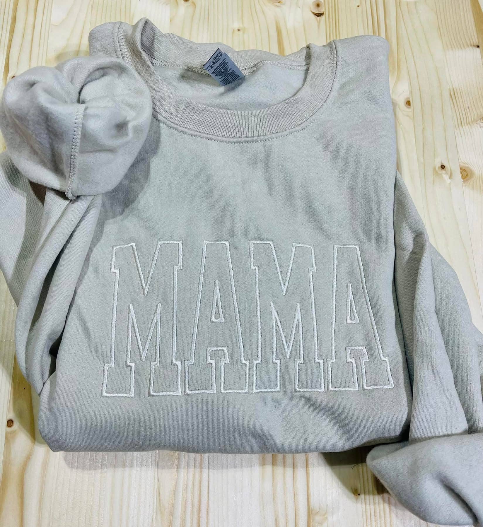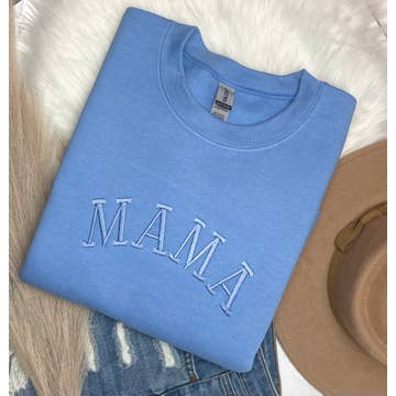 60% Cotton, 40% Polyester Mama Design Color: Acid Wash Tide **Acid wash pattern will be unique to each sweatshirt | Acid wash gives garment an unstructured, worn-in softnes Ribbed Neckline and Cuffs •SIZING: Roomy fit. Ordering your normal size is recommended for a roomy fit. Size down if between sizes; Size up for an oversized look. Please refer to the size chart if you are unsure. •CARE: Gentle wash in cold water. Lay flat to dry.